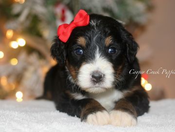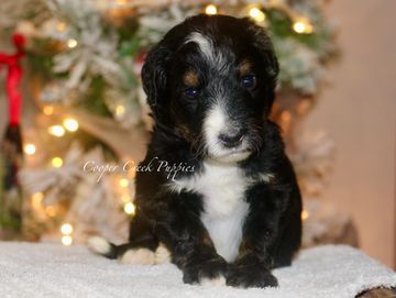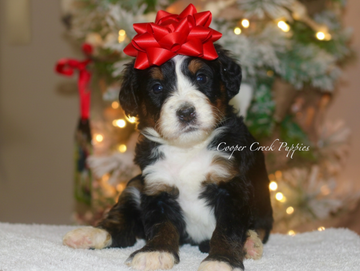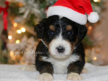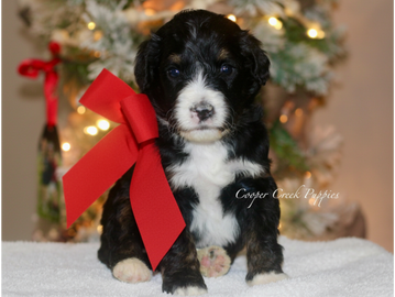 Born 10.27. Ready to go on 12.22 at earliest. Puppies will be potty trained to pellets. They are up to date on all. shots and dewormings. Will come with health certificate & 30 days free insurance. We offer a year health guarantee as well. Parents are health tested & clear. They are socialized around our kids and our farm animals. Will be about 50-60lbs grown. Microchipped and sent home with puppy folder and food.